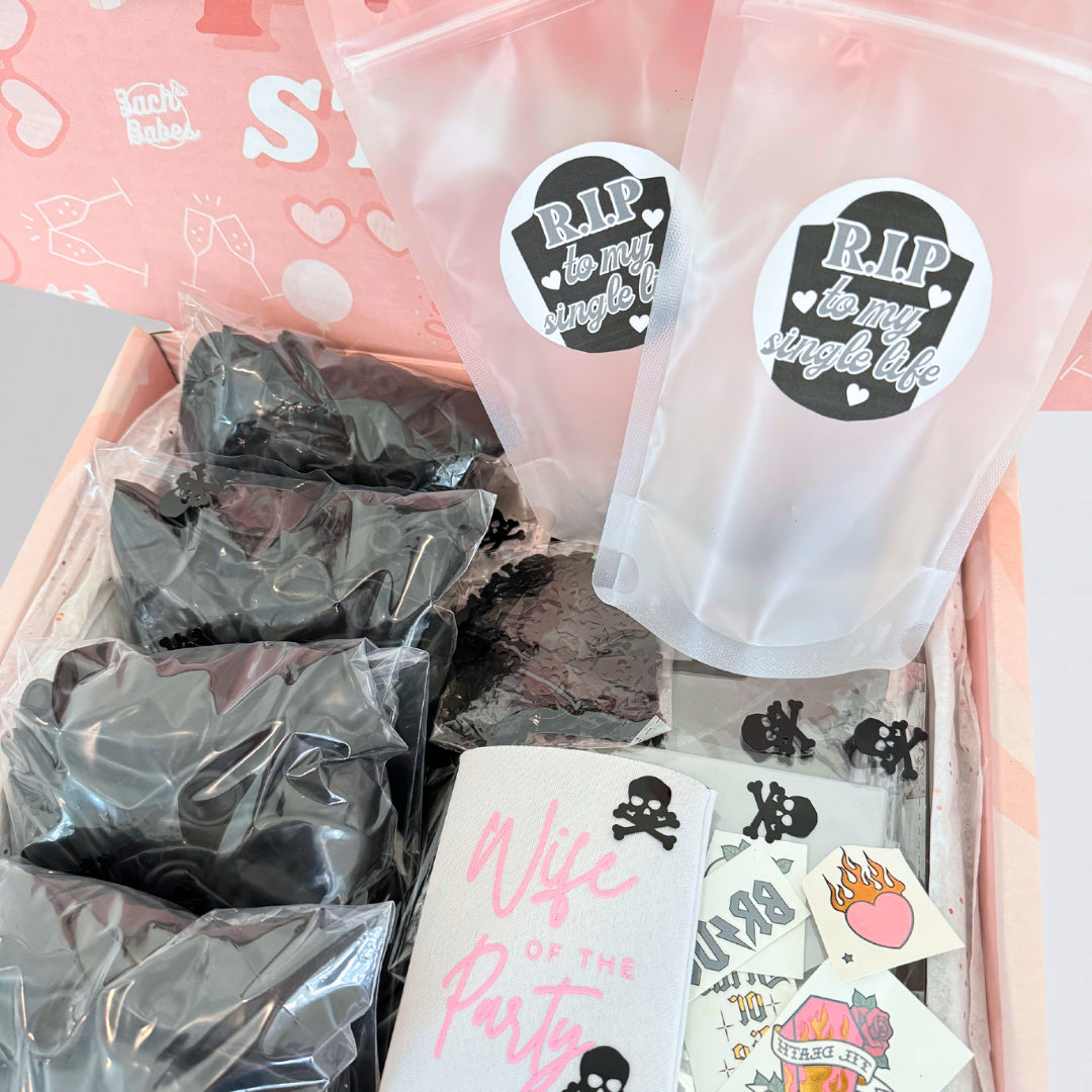 Get ready to mourn the end of singlehood with our RIP To Her Single Life box! It's all black, all chic, and all about celebrating 'Til Death Do Us Party! Inside, you'll find everything you need for a killer bash, from black balloons to themed drink pouches for everyone. Your box will have everything that comes with our “Full Decor” package, so that you can make the set up die for!